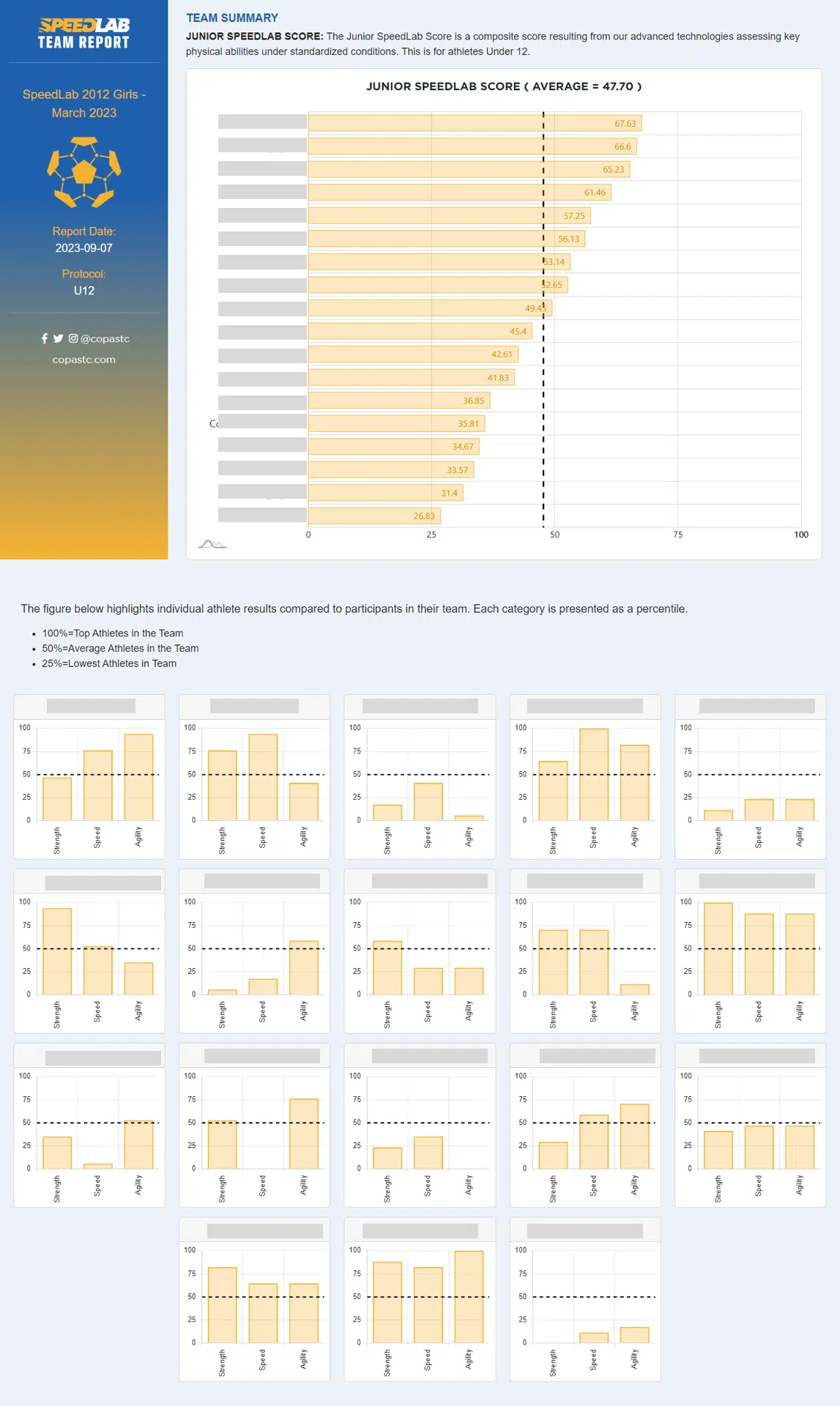 Moreover, coaches overseeing teams from 2015-2012 will benefit from comprehensive Team Reports, offering insights into their players’ physical advancements. Year over year COPA has been able to document the progress of these skills for WCSC players.